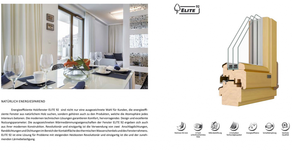 Das Holz, aus dem die Fenster hergestellt werden, wird genau ausgewählt. Das Schnittholz zur Fensterherstellung wird sorgfältig getrocknet. Alle anatomischen Mängel – wie Knoten, Turbane oder verdrehte Fasern werden entfernt. Zur Fensterherstellung wird hauptsächlich Kiefer-, Meranti- oder Eichenholz verwendet. Garantie: – 5 Jahre – Einbau durch befugte Einbauteams – 3 Jahre- Einbau durch Teams, die nicht befugt sind – 3 Jahre – für abdeckende Anstrichbeschichtungen – 2 Jahre – für transparente Anstrichbeschichtungen
